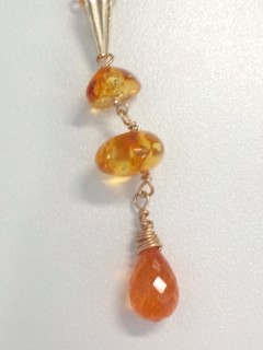 ネックレスの方はライトブラウンカラーのバルティックアンバーとマンダリンガーネット