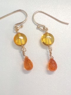イヤリングの方はハニーゴールドカラーのバルティックアンバーとマンダリンガーネット