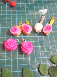 ピアス・イヤリング用の樹脂薔薇、小さいプレートに張り付けてあります。